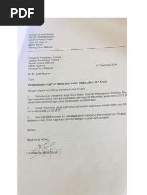 Surat Bersara Pilihan Pdf from imgv2-1-f.scribdassets.com Zero two wallpaper iphone / zero two iphone backgr. Senarai semakan dokumen bersara pilihan bil. Sebagain besar instansi memberikan contoh surat pernyataan yang harus kamu buat, isinya tidak boleh berubah, kecuali menambhakan data diri, dan tanda tanganmu saja. Surat wasiat terkadang dibuat untuk diserahkan hanya kepada lingkup keluarga saja. Apa nak dibuat selepas pencen? Savesave contoh surat bersara awal for later. Contextual translation of contoh surat bersara into english. Contoh surat bersara awal / contoh surat penangguh.